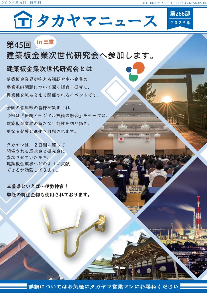 タカヤマニュース タカヤマニュース 2025年9月号 2025年09月02日 建築板金業次世代研究会への参加 < prev タカヤマニュース 2025年8月号 カテゴリ すべて お知らせタカヤマニュース展示会出展荷物追跡 新着記事 2024年05月07日 タカヤマニュース タカヤマニュース 5月号 2023年11月01日 タカヤマニュース タカヤマニュース 11月号 2023年09月01日 タカヤマニュース タカヤマニュース 9月号 2025年07月14日 タカヤマニュース タカヤマニュース 2025年7月号 2024年12月09日 タカヤマニュース タカヤマニュース 12月号